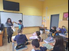 Дружење са писцем Сунчицом Ћирковић Ученици млађих разреда дружили су се са ауторком књиге „Мали пас великог срца“, Сунчицом Ћирковић. Часови са Сунчицом су били весели, живи. Ученици су активно учествовали у читању одломака датог романа, погађању загонетних предмета у вези са садржајем романа, осмишљавали су реченице са што више речи које почињу истим словом. Радовали се, туговали и смејали заједно са главним јунаком Мирком. Овако је било када смо испратили Сунчицу Ћирковић. Заронили смо у чаробан свет слова и дружили смо се са Мирком и драгим Вилијем. Ко је Вили? Одговор ћете пронаћи у овом роману. 27.11.2023.