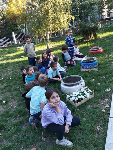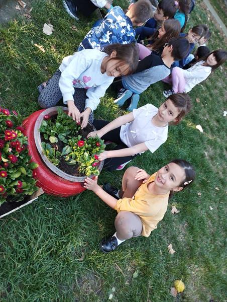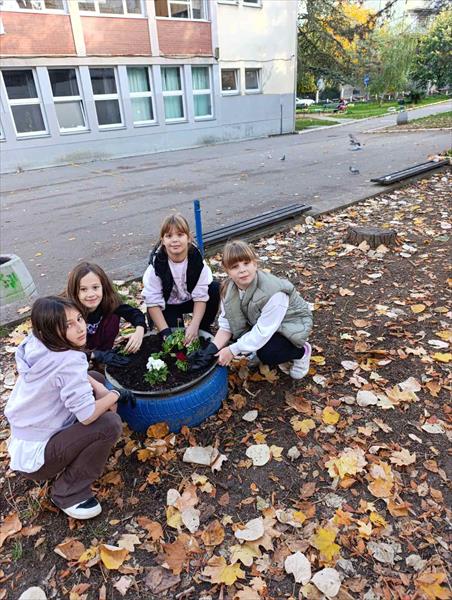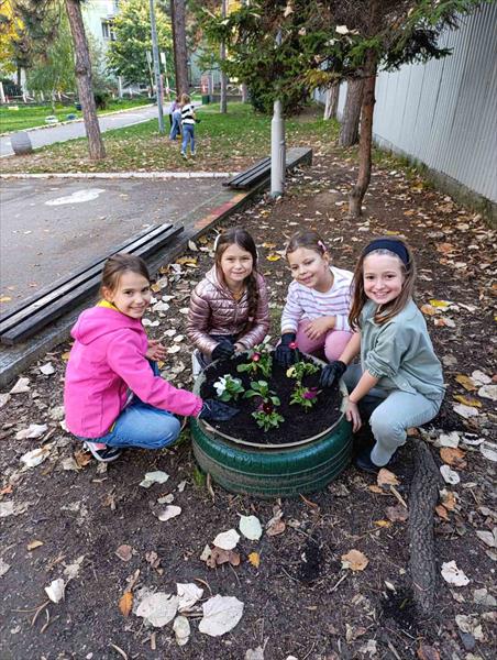 САДЊА ЦВЕЋА Ученици првог и другог разреда у оквиру еколошке секције уређивали су школско двориште. Девојчице су садиле цвеће, које нам је донирала општина Савски венац, а дечаци су се потрудили да покупе отпатке. На тај начин су заједнички учинили да школско двориште процвета и заблиста. 12.11.2025.