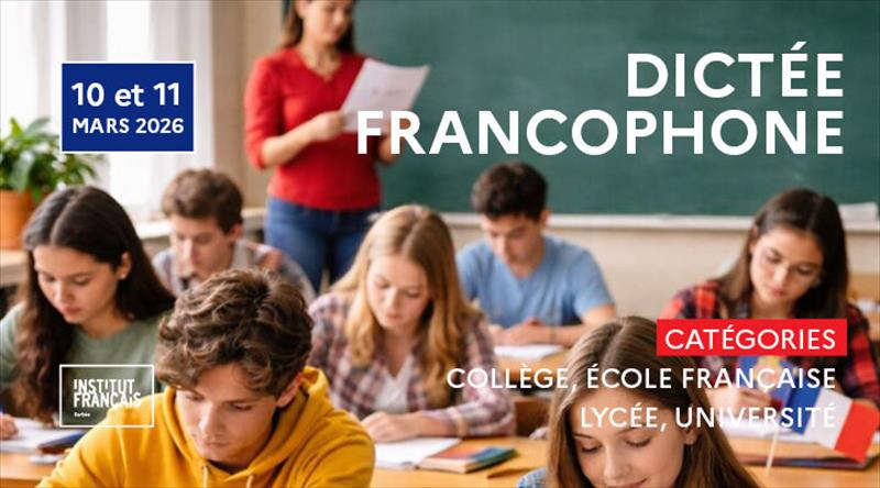 Франкофони диктат 2026 Као и савке године, Франкофони диктат се и ове године одржава у ОШ „Војвода Радомир Путник“ током Месеца франкофоније. Ученици који желе да учествују и покажу своје вештине у познавању француског правописа могу то да учине 11. марта у 12 часова и 35 минута у кафинету за француски језик. Диктат се организује у категорији „Виши разреди основне школе“ и одговара језичком новоун А2, а ученици који желе да учествују треба да се пријаве до петка 6. марта наставнику француског језика Тањи Гњидић. Ове године имамо част да ће текст изабран за ово такмичење нашим ученицима читати координатор за двојезичну наставу Француског института у Београду, Сесилија Пјере (Cécilia Pierret). Резултати Франкофоног диктата биће објављени на Међународни дан франкофоније 20. марта у Француском институту у Београду. 27.02.2026.